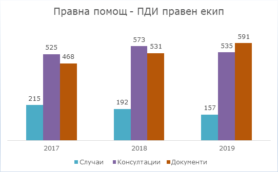 Предоставянето на правна помощ продължава да е сред приоритетните дейности за ПДИ. През 2019 г. в някои от постъпилите случаи ПДИ оказа правна помощ още на първоначалния етап от търсенето на информация, когато правният екип даде съвет и/или подготви заявление за достъп до информация. В друга категория случаи помощ бе оказана след отказ за предоставяне на информация.