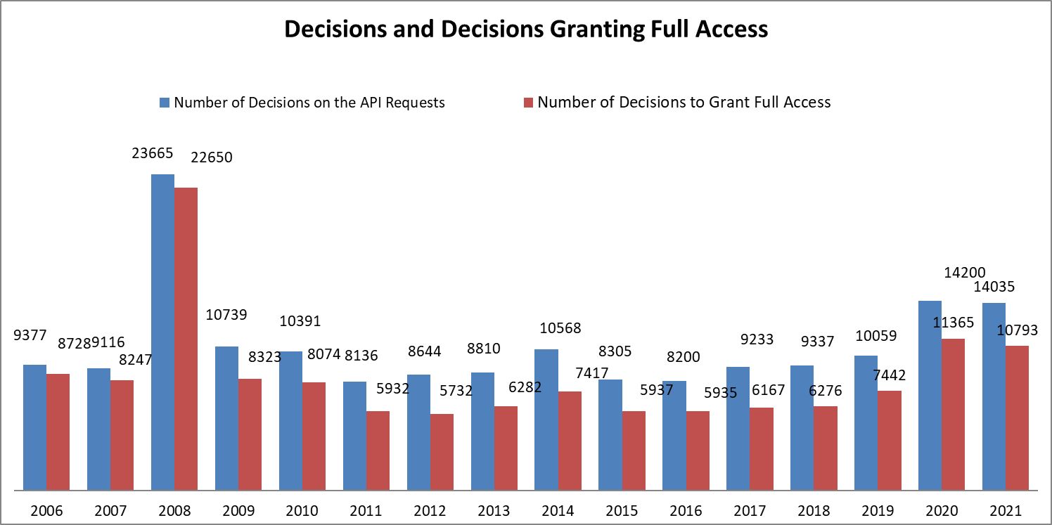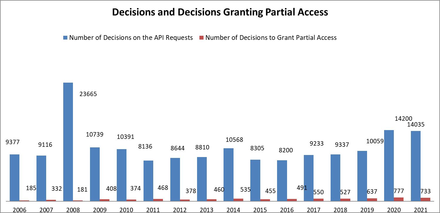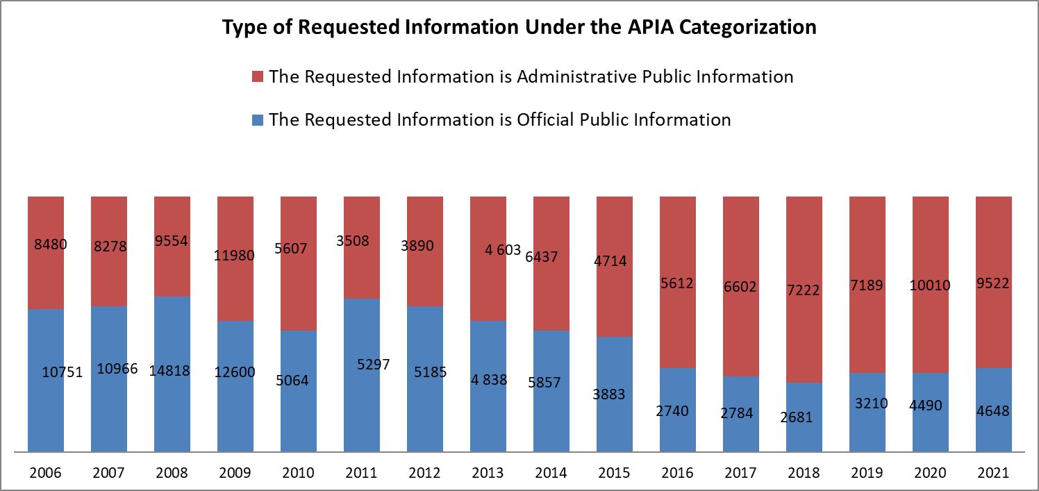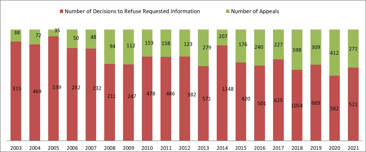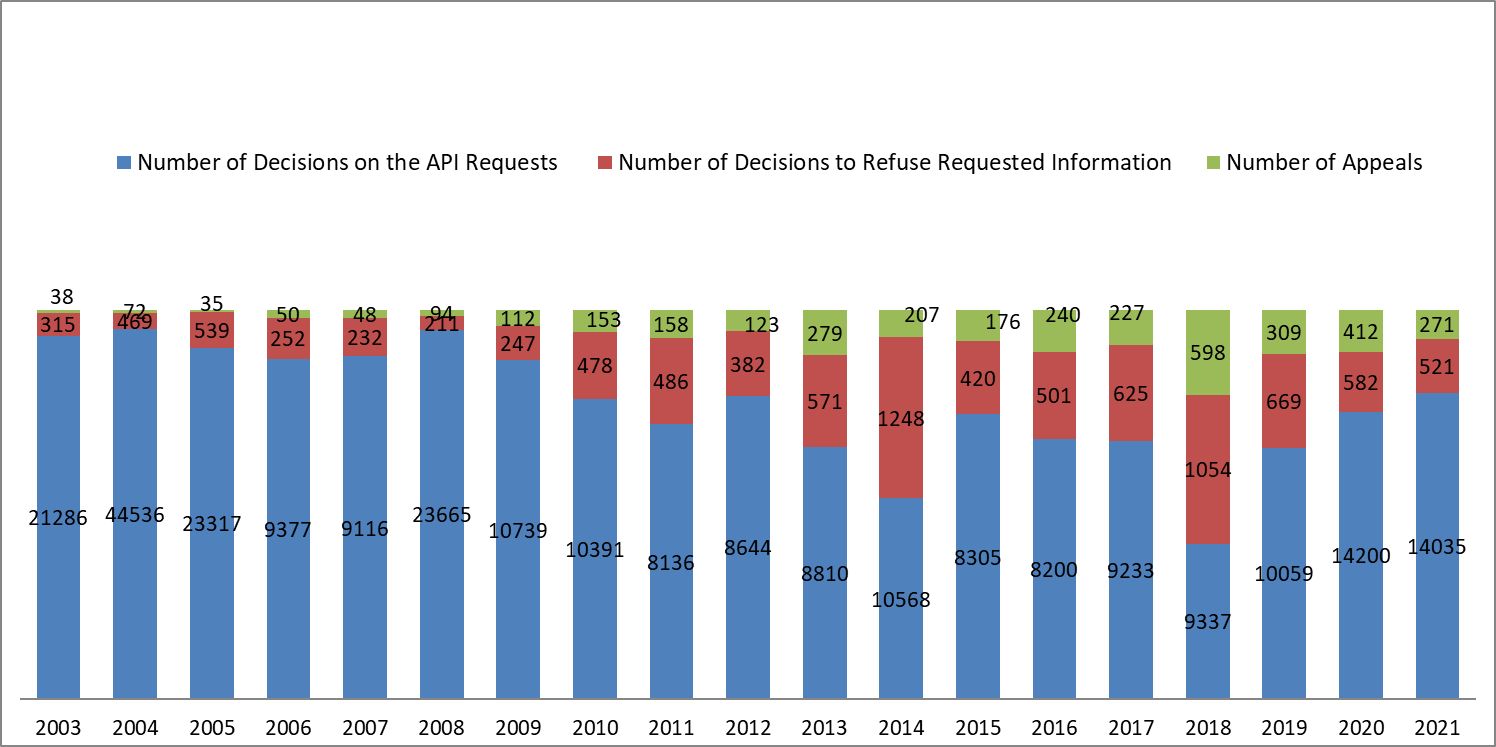 Implementation of the Access to Public Information Act based on the data published in the government reports “The State of the Administration” 2001 - 2021[1]