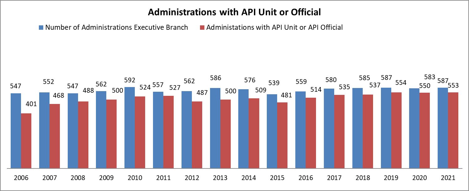 Administrations with assigned unit or official under the APIA