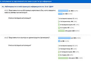 The audit results are available (in Bulgarian) by institution and by indicators, and include the responses of the institutions on the access to information requests.
