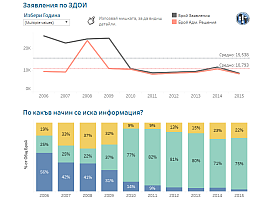 Програма Достъп до Информация, с помощта на експерт от платформата Tableau, подготви визуализация на това кой, как и за достъп до каква информация е подавал заявления до органите на изпълнителната власт през 15-те години от прилагането на Закона за достъп до обществена информация в България.