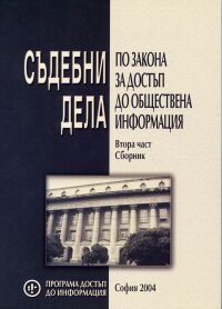 част". В книгата са представени по-важните решения на Върховния административен съд по Закона за достъп до обществена информация в периода края на 2002 - месец март 2004 година. Коментарният текст на сборника разглежда проблемите, свързани с допустимостта на жалбите срещу мълчаливи откази, дефинирането на понятието "обществена" информация, формулирането на заявленията и ограниченията на правото на достъп до информация. Анализирана е практиката при отказите на основание държавна, служебна, търговска тайна, както и ограничението, свързано с подготвителните документи. Публикуваните решения по десет съдебни дела са важни с оглед обществения интерес и тълкуването на отделни положения от ЗДОИ. Четете тук първите отзиви за книгата. Книгата можете да намерите в книжарниците на фирма Сиела