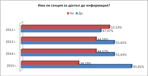 Последната информация би трябвало да бъде публикувана в секция „Достъп до информация” на интернет страницата, заедно с годишен отчет за постъпилите заявления, отказите и причините за тези откази, както и вътрешни правила относно достъпа до обществена информация и реда за достъп до публичните регистри, съхранявани от административните структури в системата на изпълнителната власт.