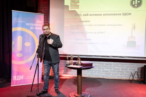 Благодарим на екипа на ПДИ и на журито за наградата. Считам я за оценка за дейността на БОЕЦ по прилагане на ЗДОИ и налагане на този инструмент за граждански контрол върху дейността на институциите. Примерът, който даваме, увлича и други граждани и организации, дава им кураж, провокира и в тях активност и така заедно участваме в процеса по изграждане на осъзнатото гражданско общество в България, което е една от основните цели на БОЕЦ. Искам да поздравя и всички граждани, организации и институции, които бяха номинирани и отличени, тяхната дейност е много важна.