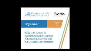 На 14 август Центърът за право и демокрация и неправителствената организация HOPE публикуваха „Проучване на достъпа до информация в Мианмар: Промените в достъпа до информация за гражданските организации в областта на здравеопазването“. На базата на проведени анкети с 60 организации на гражданското общество, проучването оценява състоянието на достъпа до здравна информация след военния преврат на 1 февруари 2021 г.