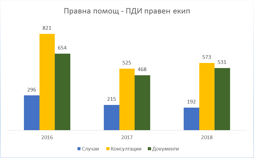 Предоставянето на правна помощ продължава да е сред приоритетните дейности за ПДИ. През 2018 г. в някои от постъпилите случаи Програма Достъп до информация оказа правна помощ още на първоначалния етап от търсенето на информация, когато правният екип даде съвет и/или подготви заявление за достъп до информация. В друга категория случаи помощ бе оказана след отказ на информация.